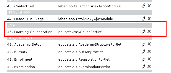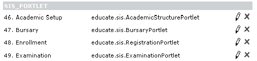 There are four portlets already registered for you. These portlets are grouped under one group called SIS_PORTLET because they belong to the Student Information System (or Student Management System – whichever name you like).