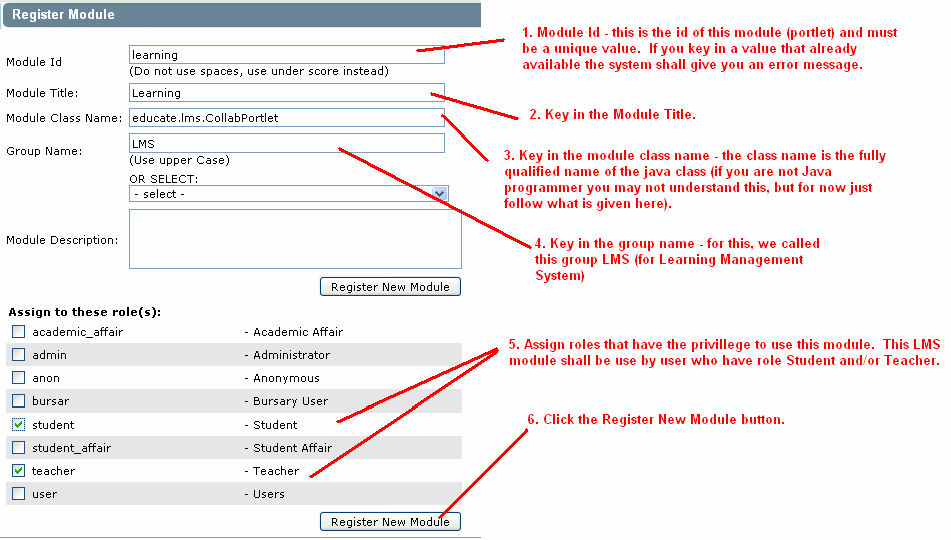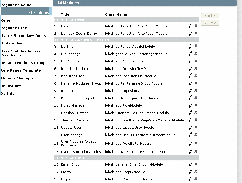 To view list of modules already registered into this portal, click on List Modules. You will get a page like below: